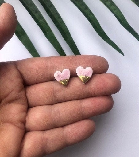 Speckled Lilac heart studs with gold tips